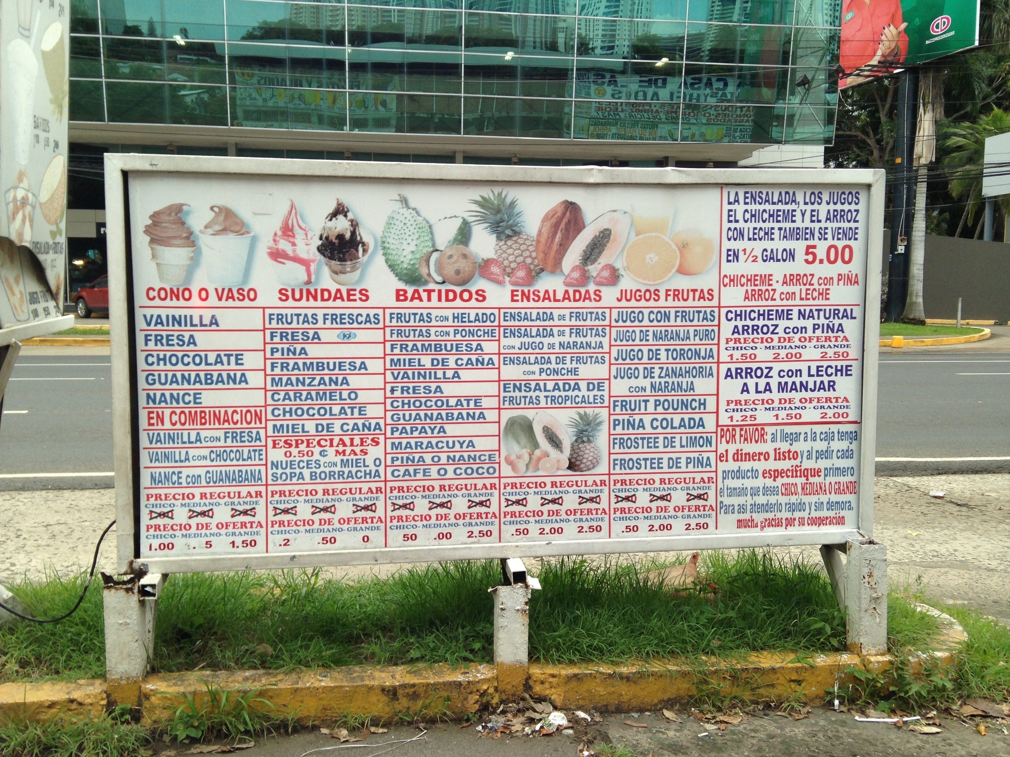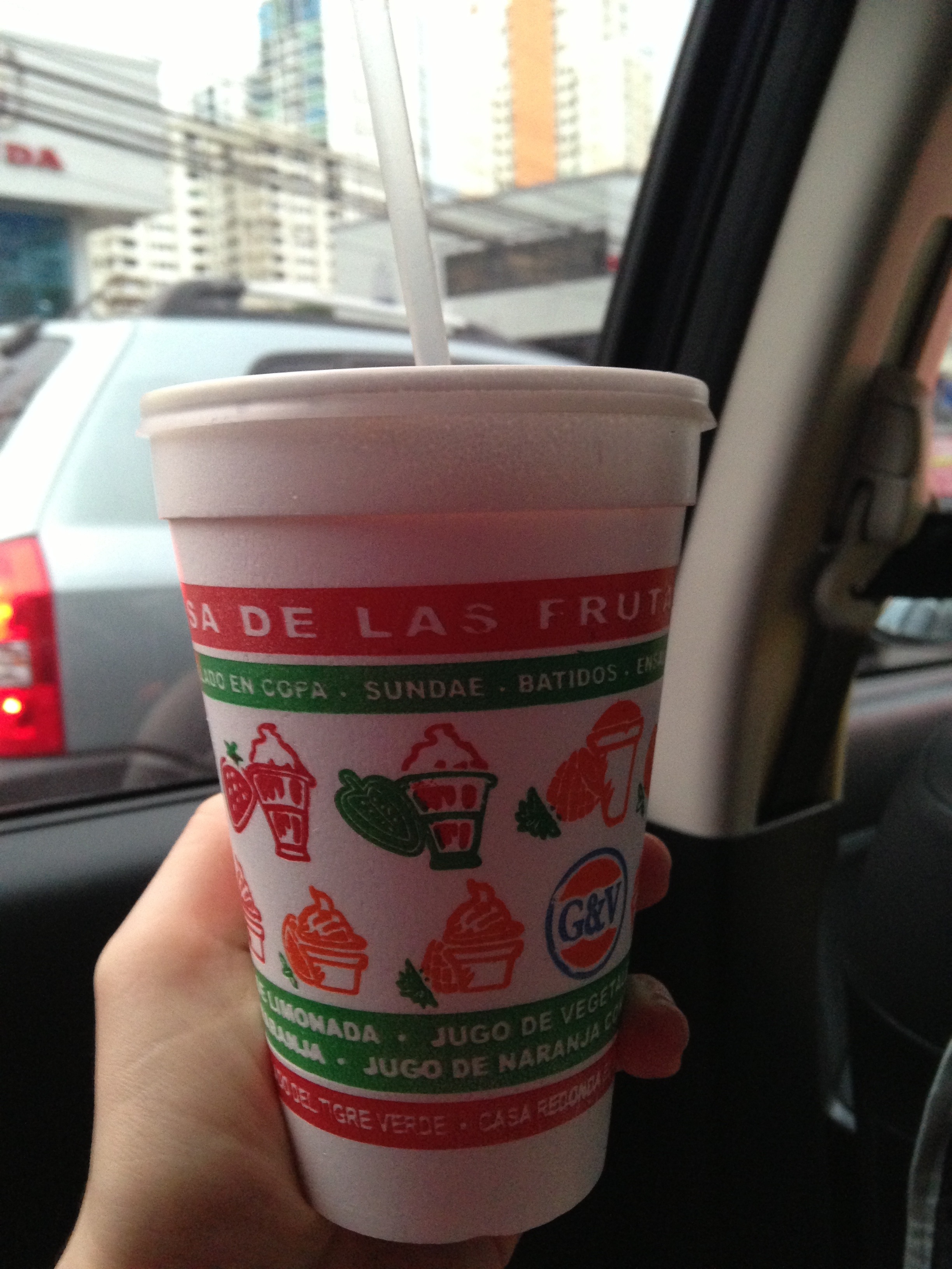 Imagine your first weeks in Panama, you are in your car driving through a street (Calle 50), and suddenly you spot a long line of cars in a drive through, you think «Wow what do they have over there that makes people do that line for?». You will be shocked, shocked, when you see the place, since it’s a small kiosk called «La Casa de las Frutas Jugos y Helados» (The house of fruits, juices and ice creams), and it doesn’t look as something as popular as it is. But the next time you drive through that same street, you see the same line or a longer one, that’s when you decide, you will try the famouse juices the next time you drive through there, and you do.