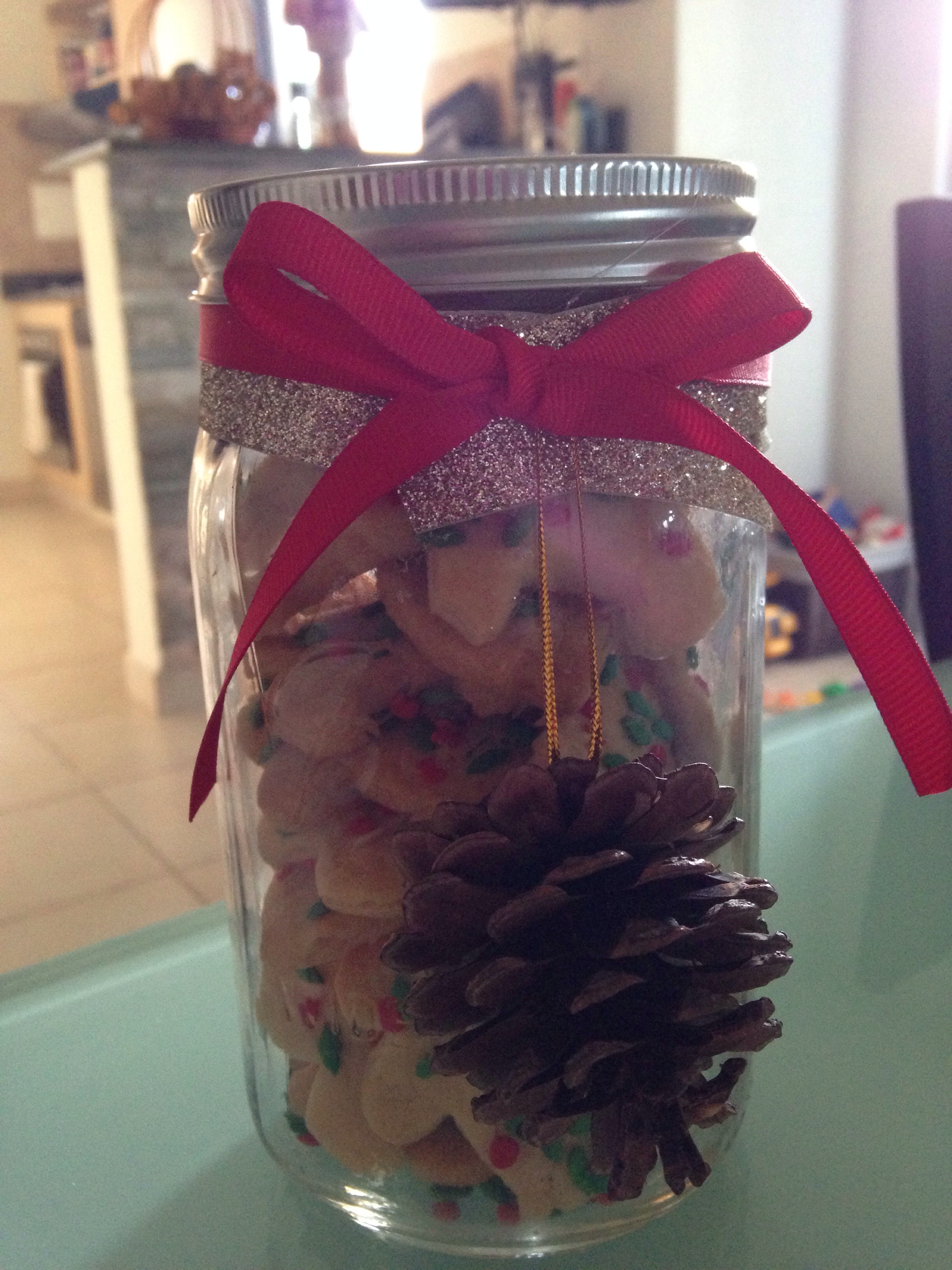 2. Galletas en Mason Jars: no se si les pasa pero yo soy adicta a comprar Mason Jars, prefiero que me sobren a que me falten, y vivo buscando proyectos para hacer con estos. Hoy hice el primero, realmente super simple, lo utilice para regalar galletas, con un liston me parece que se veia bien.