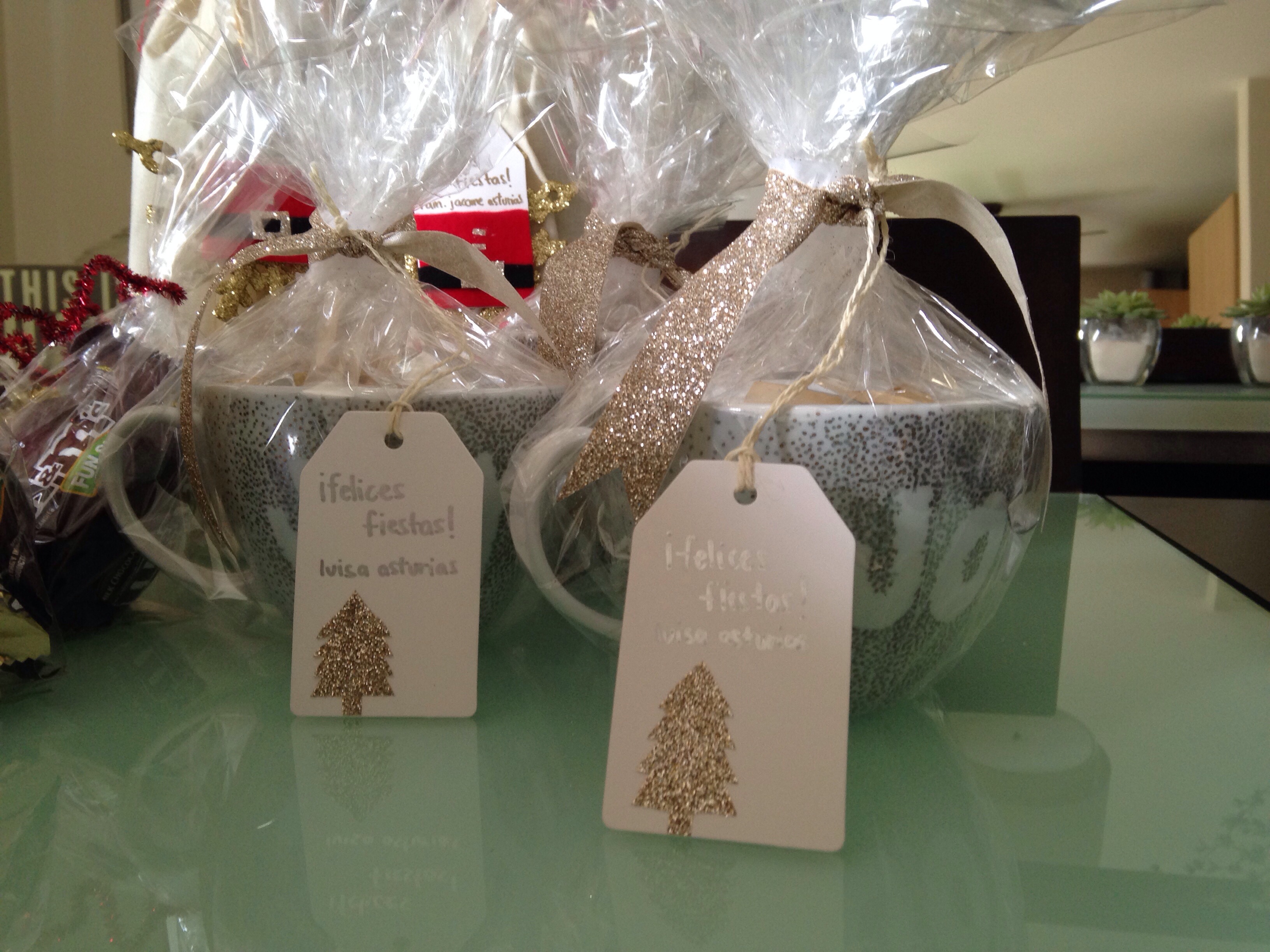 1. Tazas decoradas: estas me encantaron, son súper sencillas, y aunque requieren tiempo, yo me relaje haciéndolas. Que se requiere? Tazas blancas o del color que quieras, lisas, sharpies de colores (yo use negro, dorado y plateado), tape o papel contact o cualquier adhesivo sobre el que se pueda dibujar, chocolates, listón y papel celofán.