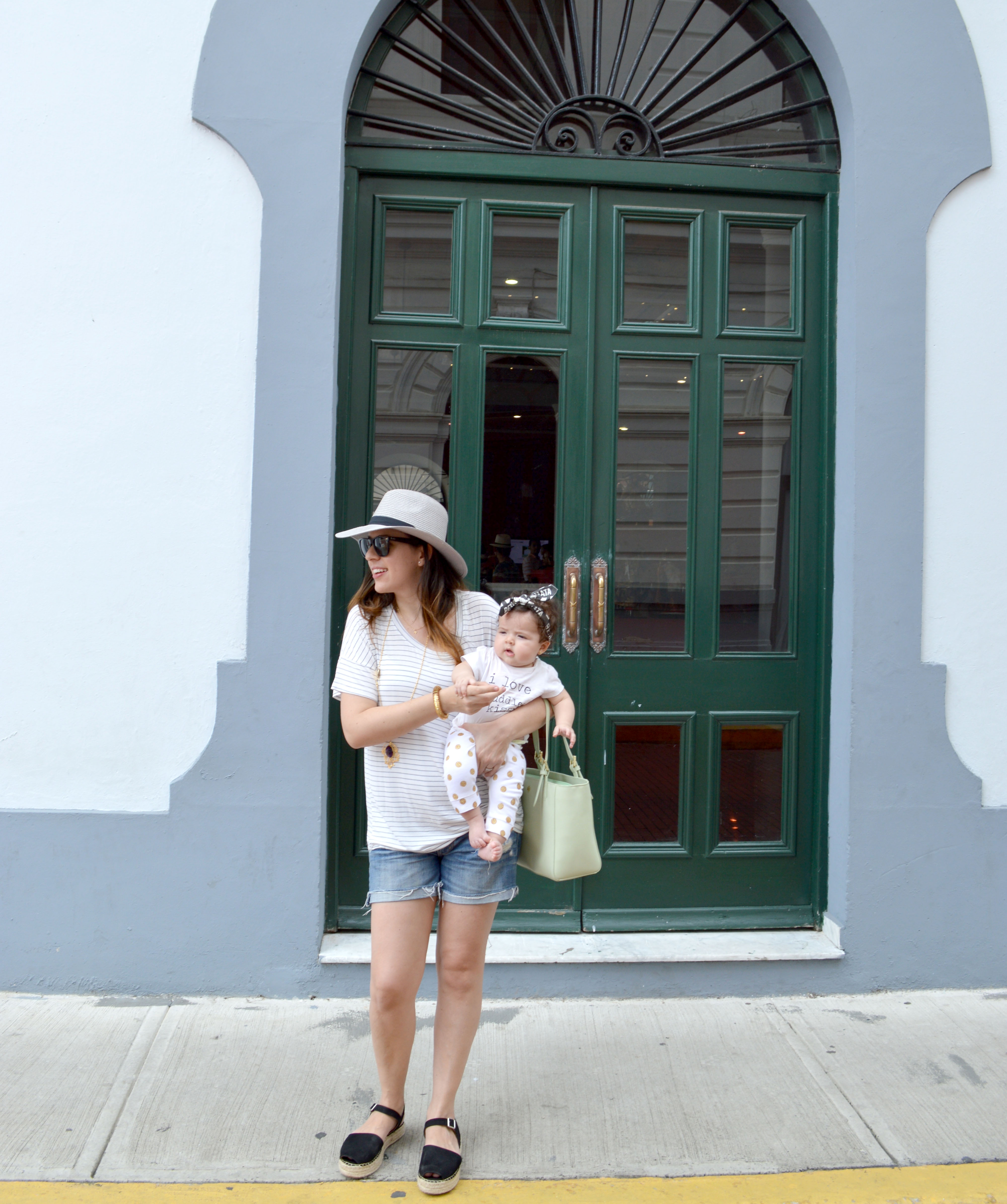 My momiform, as you can see in the pictures, are shorts and t shirts… every.single.day.  It’s the most comfortable thing for me for breastfeeding and for Panama’s heat.  Yes, I could do an effort and wear a different type of top, of course I could, and I do, sometimes, especially when I’m going out (with or without kids).  And with shorts and t shirts, it was soooo easy to have my momiform seem like pjs, loose shorts and old tshirts (vintage)… and there were days when my pjs were cuter than my outfit.   So, I decided to do 3 things that helped me change my momiform, since I was so over it.