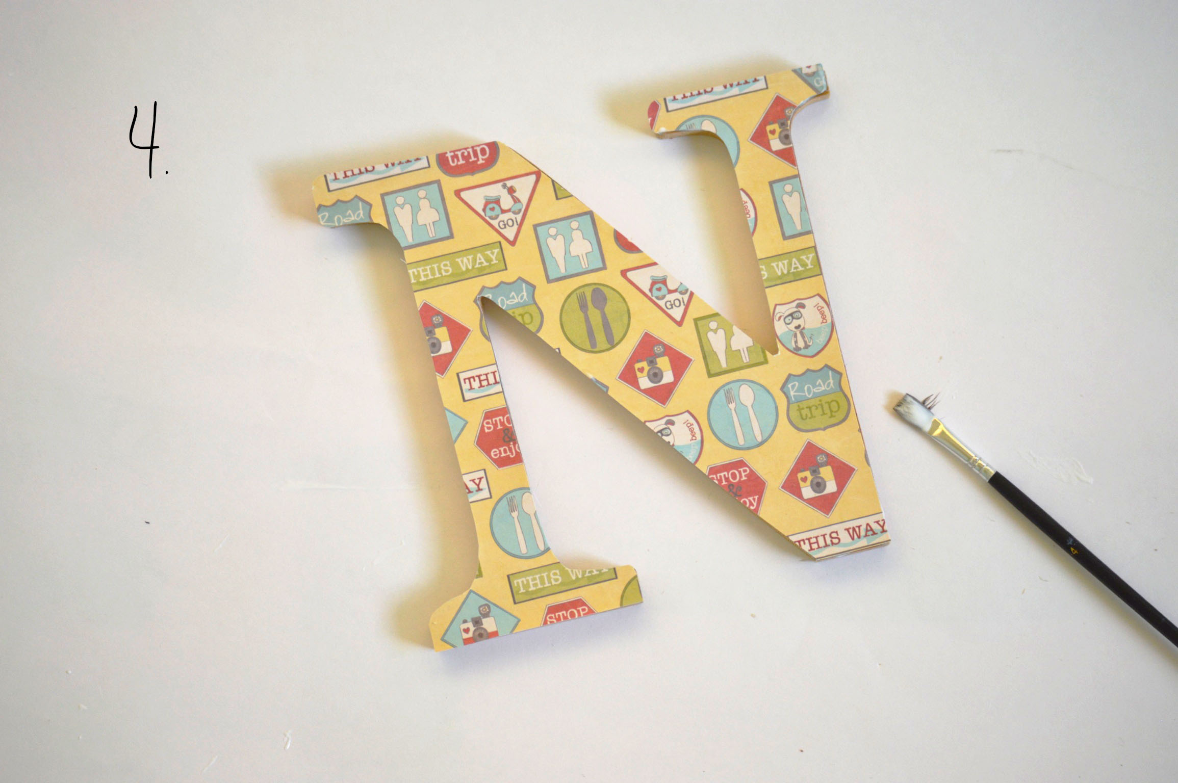 Aplica Mod Podge sobre la letra ya pegada.